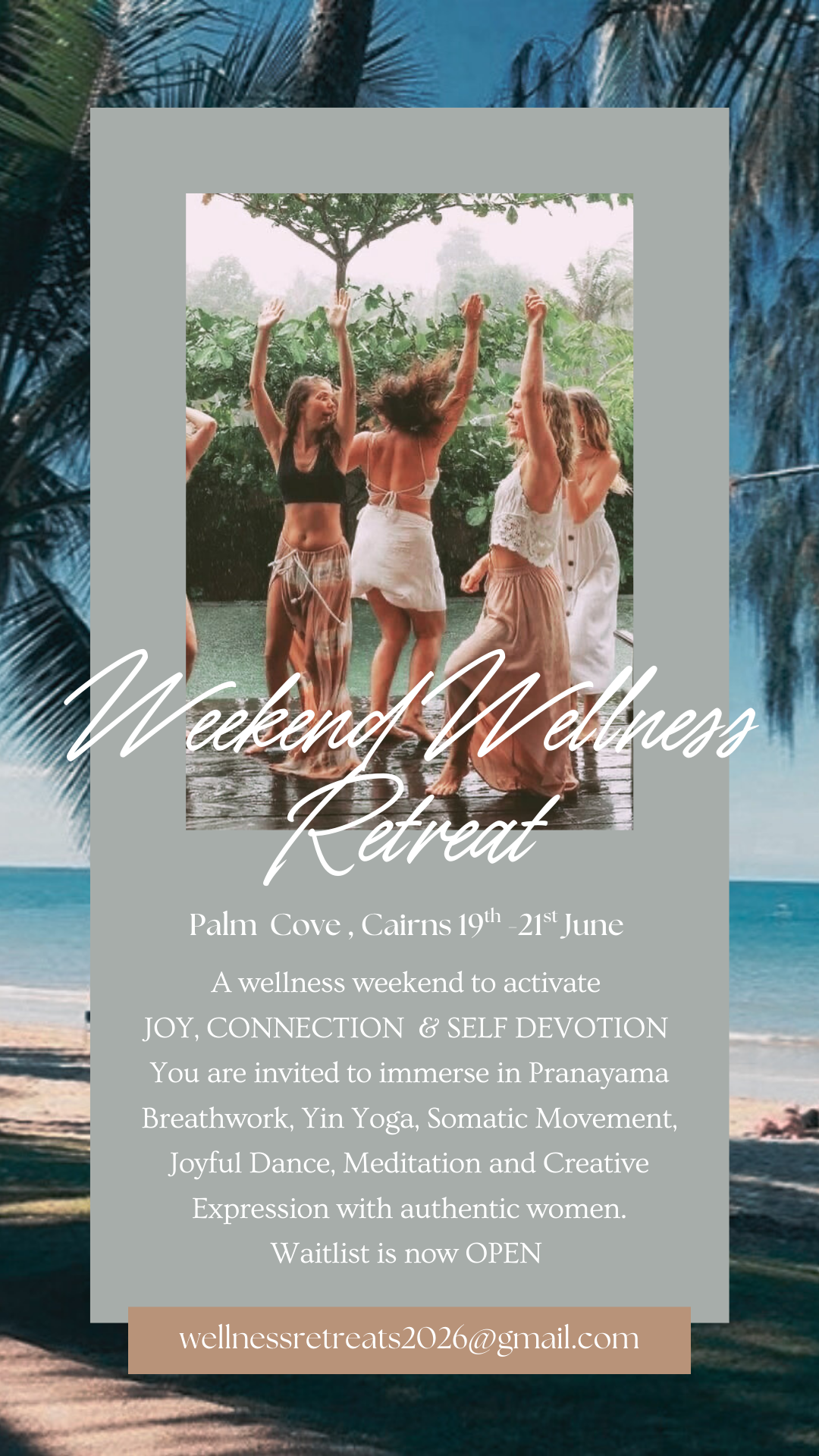 Wellness Retreats are curated to cultivate joy, authentic connection, self discovery and empowerment through mindfulness, movement and creative expression.